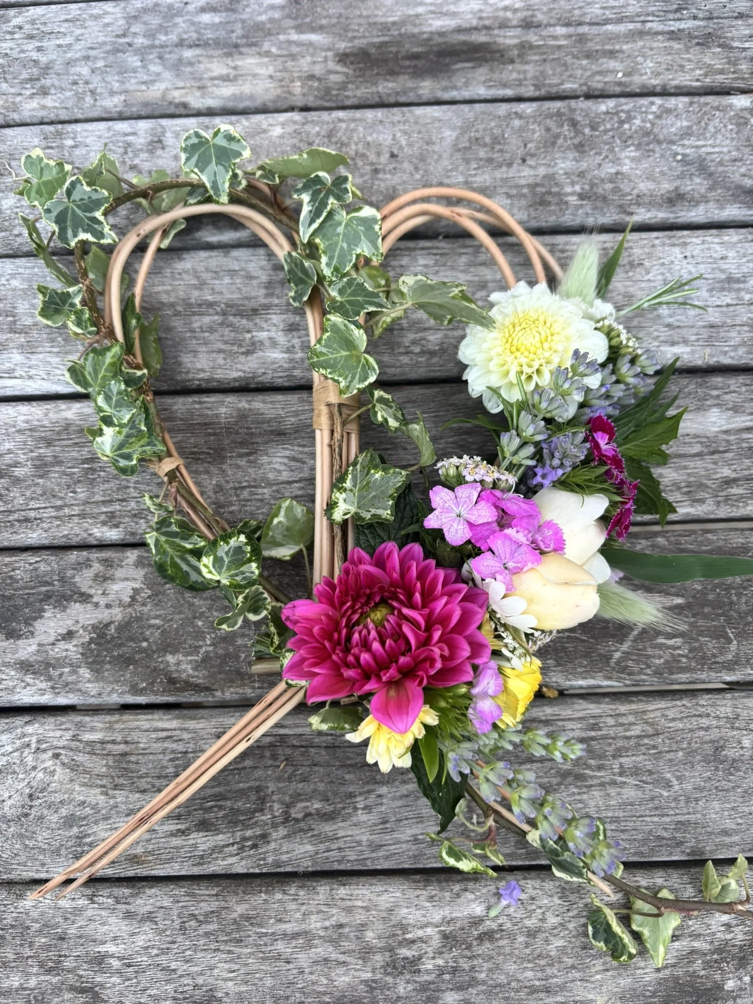 I don’t just see myself as a florist, I’m very much an artist. Every time I create a hand tied bouquet, wreath or table arrangement, I’m making a piece of art. Every single one of my designs is created with love, is unique, thought provoking and beautiful. My colour pallet is simple, taking inspiration from my own garden, the local flower farmers fields and the seasons.